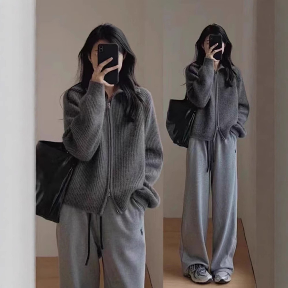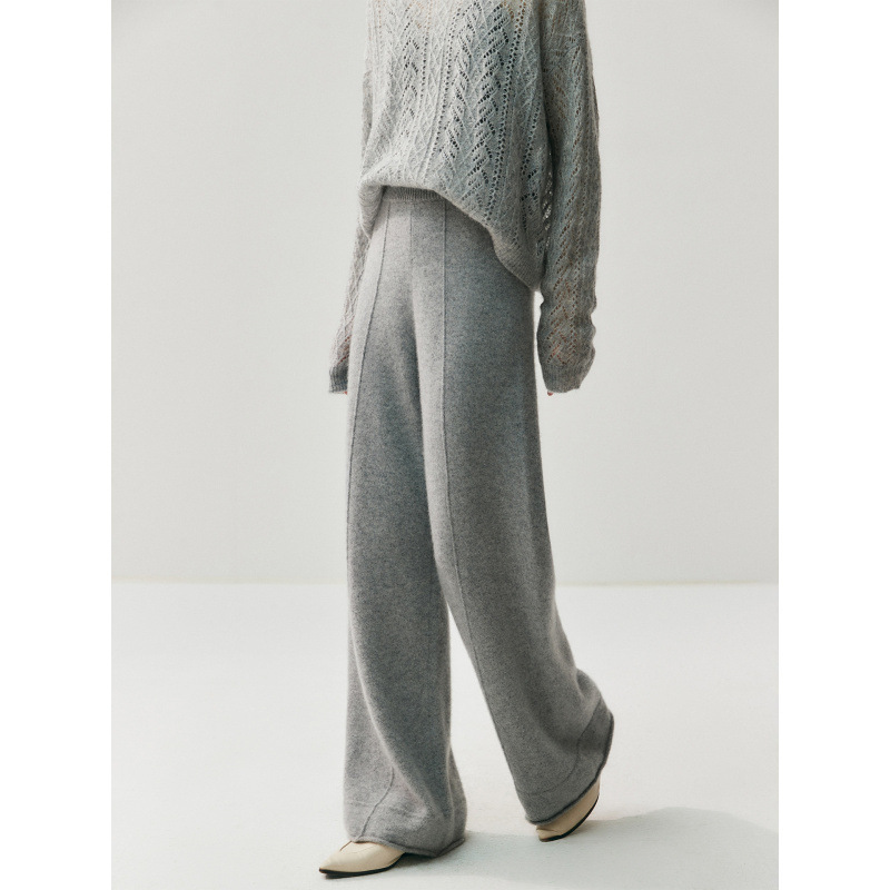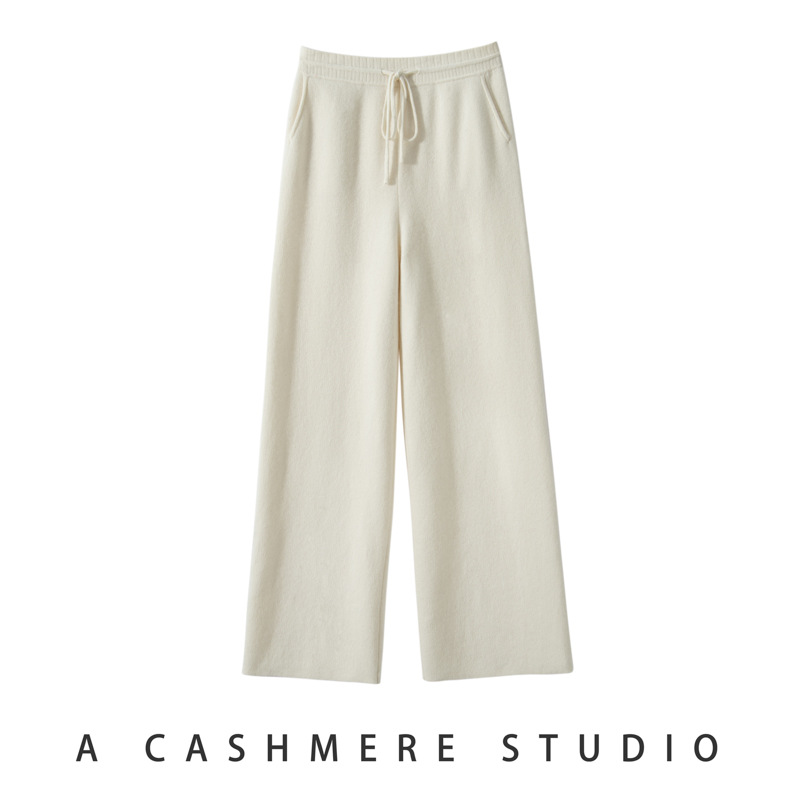 秋冬新款高腰垂感山羊绒女针织阔腿裤宽松显瘦休闲百搭直筒长裤