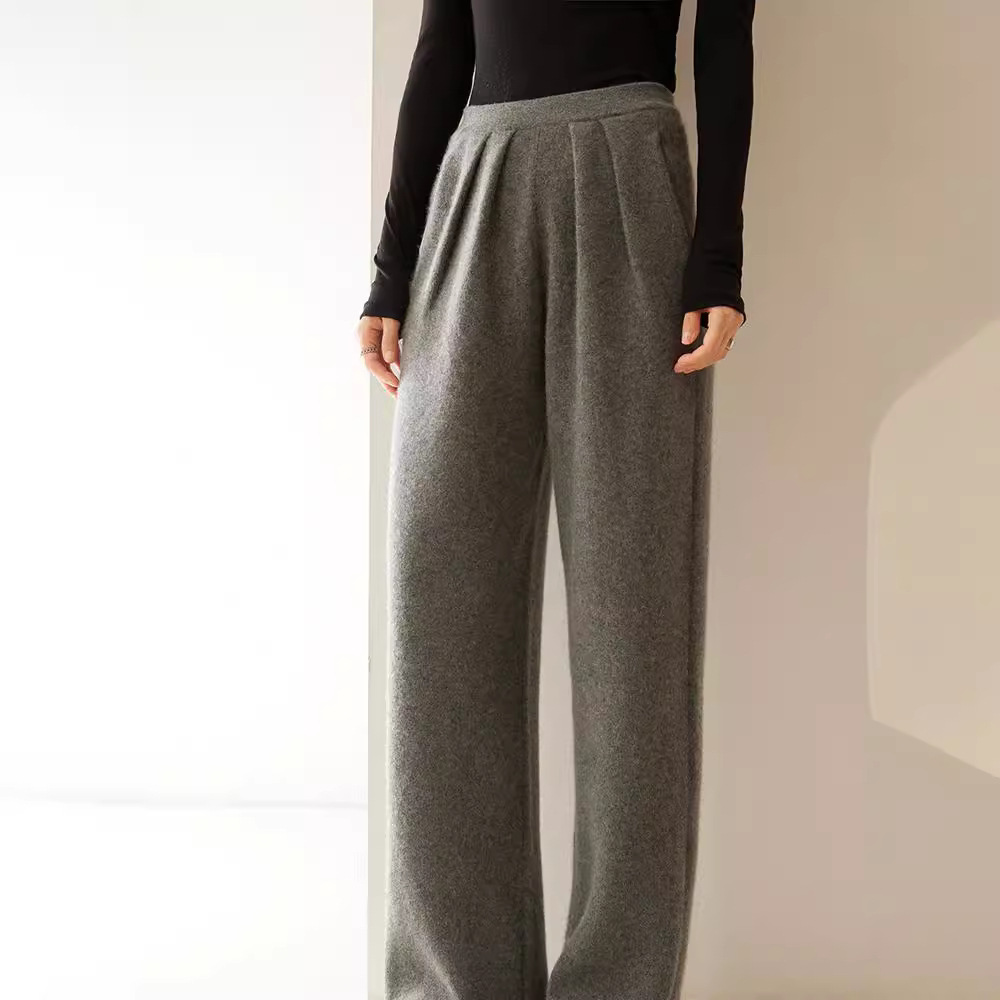 2025秋冬款山羊绒裤子女直筒高腰长裤加厚休闲裤褶皱四平阔腿裤
