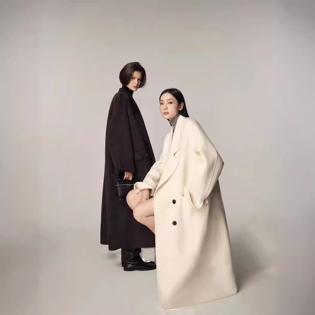 100纯山羊绒双面羊绒大衣女长款秋冬宽松经典Labbro毛呢外套