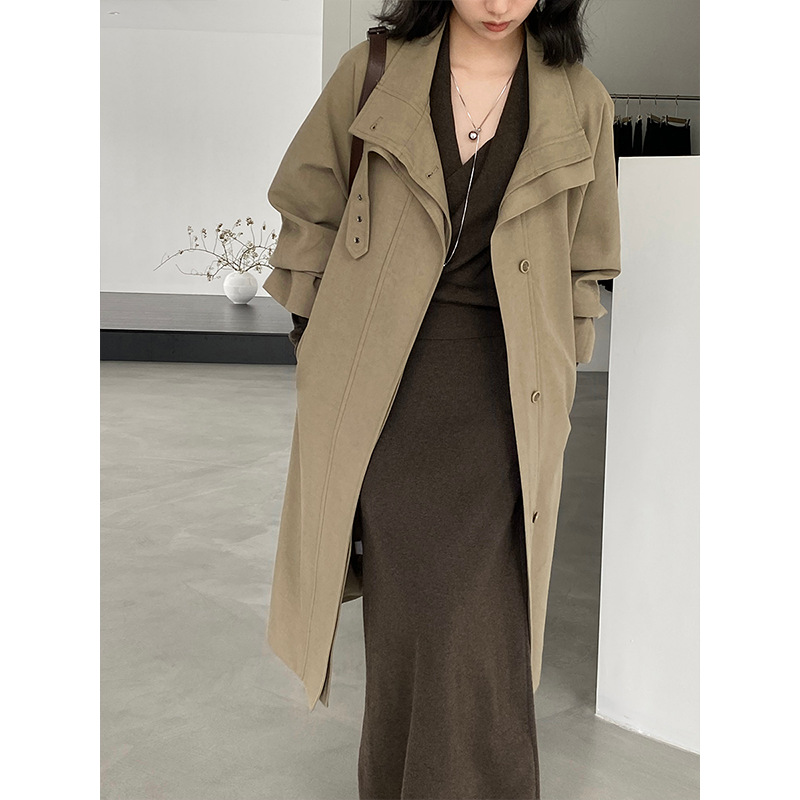 江左 晚秋 卡其色设计感英伦风廓形中长款风衣外套女高级感 1683